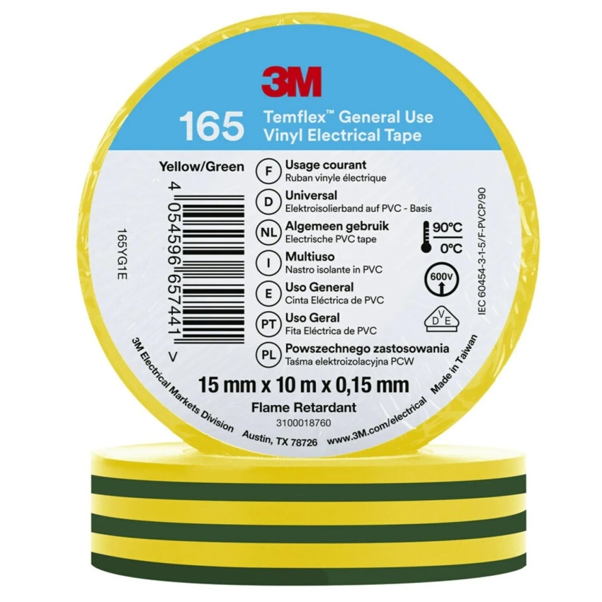 Izolační páska Temflex 165 od 3M má tloušťku 0,15 mm a je vyrobena z PVC, což ji činí univerzálním produktem pro různé aplikace. Tato vinylová elektrotechnická páska je určena k základní izolaci nízkonapěťových vodičů a kabelových spojů, a také k opravám a svazkování kabelů. Je to profesionální páska, která poskytuje vylepšený výkon a je vhodná pro použití jak uvnitř, tak venku. Páska je ideální pro stahování vodičů a vykazuje vynikající odolnost vůči oděru, kyselinám, zásadám a různým povětrnostním vlivům, včetně slunečního záření. Udržuje si vysokou účinnost i při teplotách okolního prostředí až 90 °C a je k dispozici v běžných průmyslových barvách.