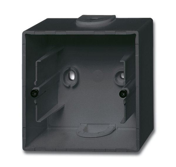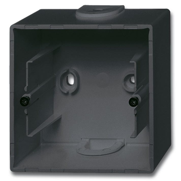Úložný materiál, Materiál pro lištové rozvody - Future® linear, Krabice přístrojová nástěnná, jednonásobná, mechová černá, Pro spínače a zásuvky. Vnitřní hloubka: 39 mm. Výška krabice: 42 mm.