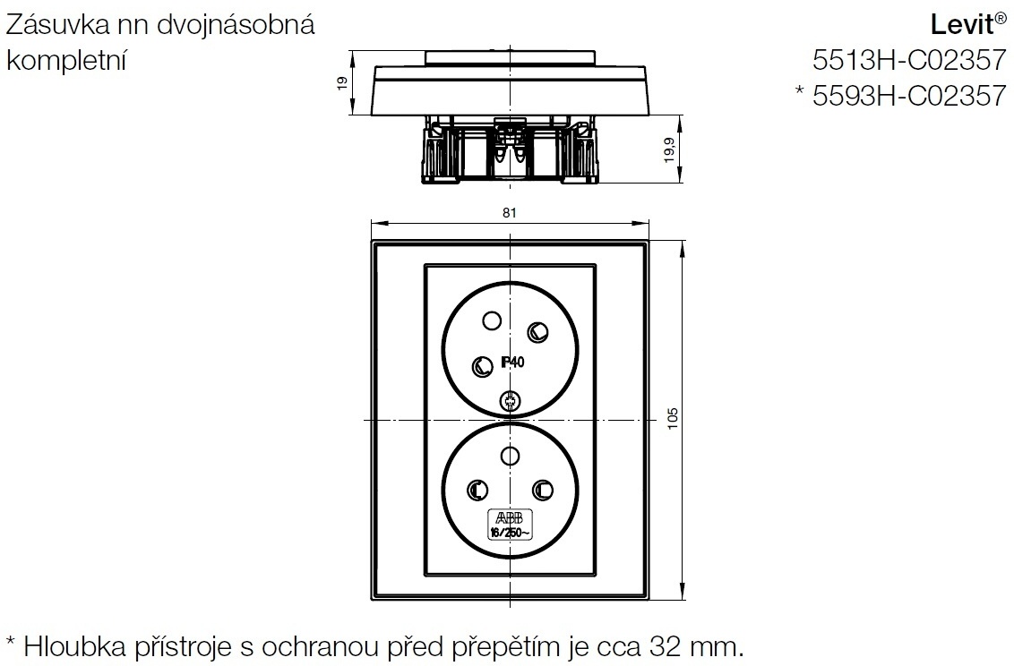 | Minimální hloubka vestavné instalační krabice | 40 mm |
