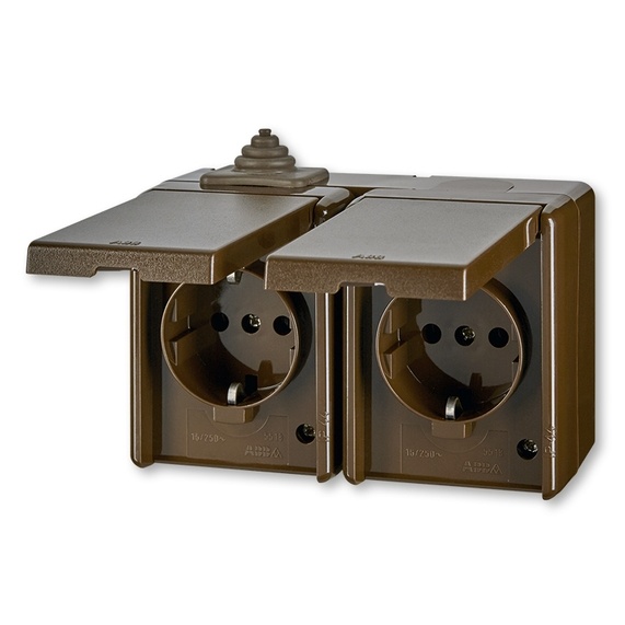 Zásuvka dvojnásobná IP 44, s ochrannými kontakty (podle DIN), s víčky