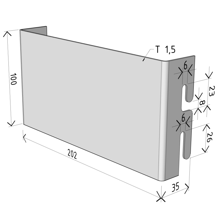 Na držák DZMU 1 se upevňují prvky, které vyžadují větší připojovací plochu, než poskytuje držák DZM 1. Toto příslušenství lze upevnit například samovrtným šroubem typu TEX. Držák se zajistí na žlabu přihnutím prodloužených jazýčků. Maximální nosnost držáku je 10 kg. Tloušťka plechu je 1,5 mm.