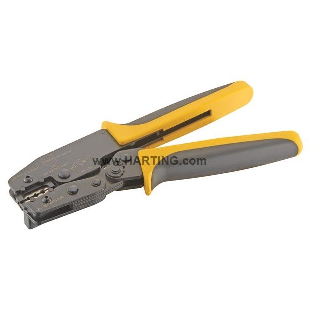 Krimpovací nástroj je vhodný pro průřez drátu Han D® - 0, 14 až 1, 5 mm², Han E® - 0, 5 až 2, 5 mm² a Han-Yellock® - 0, 5 až 2, 5 mm².
