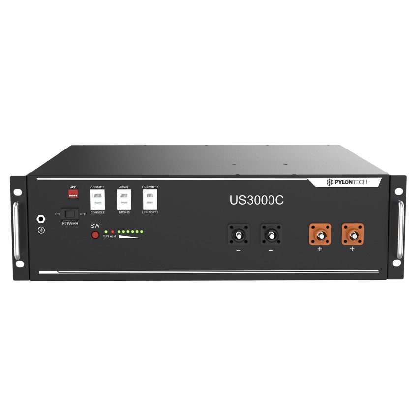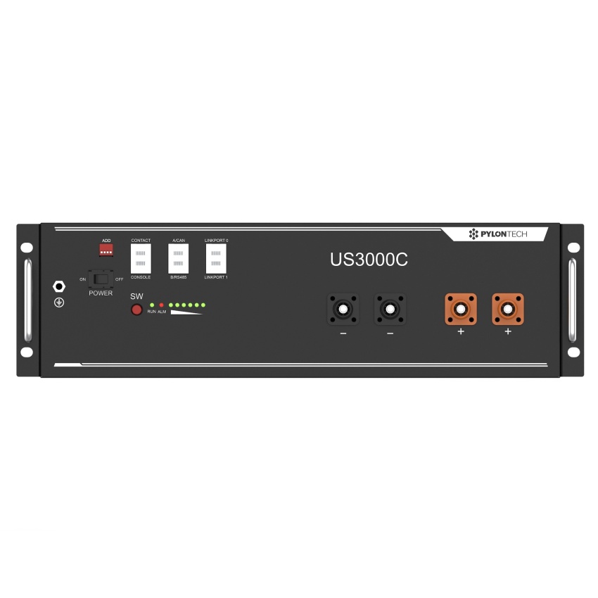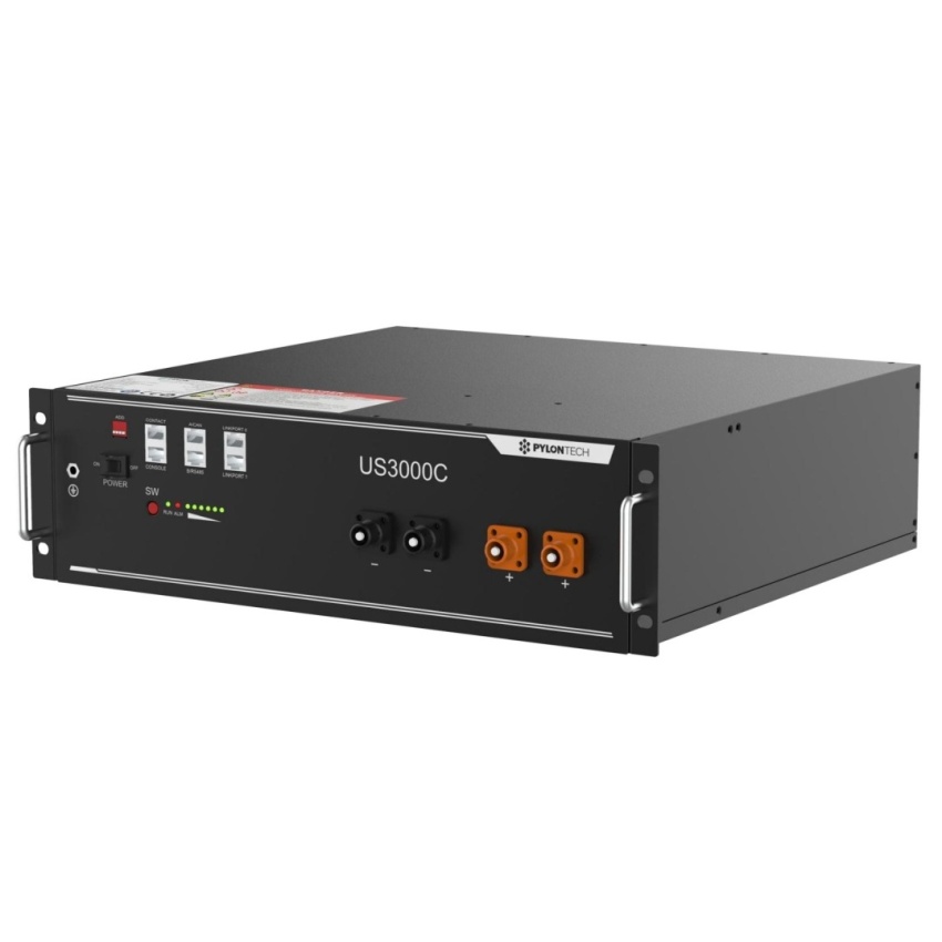 Základem této baterie je 15ks LiFePO4 článků, s nominálním napětím 48V a celkovou kapacitou 3,6 kWh, doplněné výrobcem o balancéry a BMS s komunikací s měničem po RS232, RS485, CAN sběrnici.