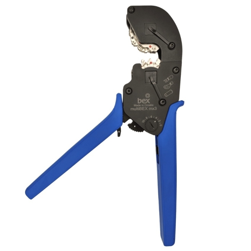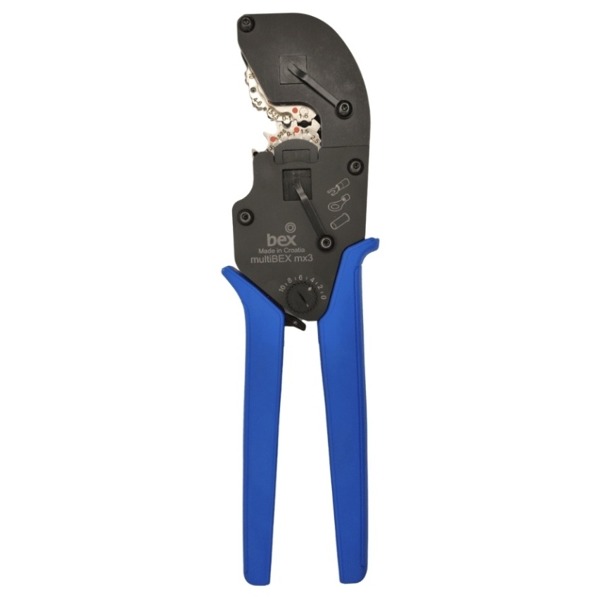 MULTIBEX – BĚŽNÉ VODIČE MX3 - Multifunkční krimpovací nástroj s rotačními čelistmi pro krimpování izolovaných a neizolovaných dutinek a ok