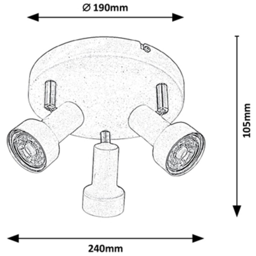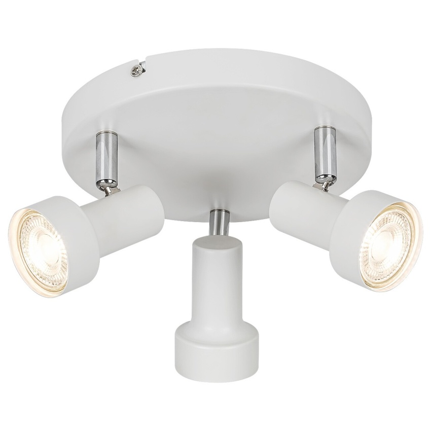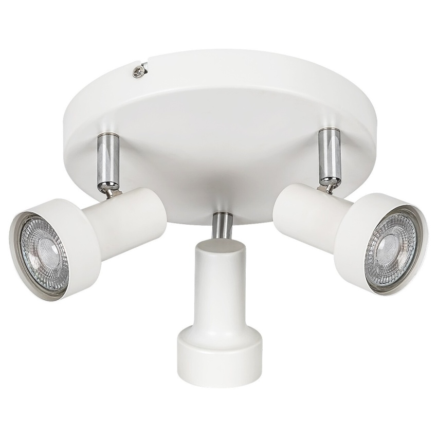 Konrad trojíté bodové svítidlo představuje standardní styl a bude svěžím a příjemným kouskem zařízení vašeho obývacího pokoje, ložnice nebo dětského pokoje. Dokonale zapadne do téměř každého interiéru definovaného světlými pastelovými barvami. Tento matný bílý model je celý vyroben z kovu a je možné jej připevnit ke stěně pomocí velkého kulatého ozdobného podstavce. Stínítka je válcovitá, dolů se rozšiřují. Díky třem hlavám svítidla hledícím v různých směrech můžete s tímto modelem dokonale osvětlit místnost. Svítidlo Konrad je možné používat s třemi žárovkami, každá s výkonem až 50W. Typ patice je GU10. Chcete-li v místnosti vytvořit intimní, útulnou atmosféru, vyberte si pro toto svítidlo teplé bílé světelné zdroje. Rozměry trojitého bodového svítidla Konrad jsou následující: šířka 240mm, vzdálenost od stropu 105 mm, průměr instalace 190 mm. Tento model se dodává bez světelných zdrojů.