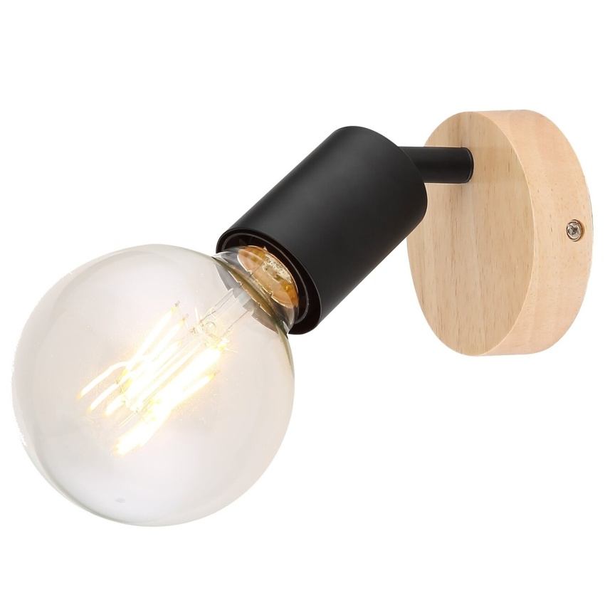 Bodové svítidlo Pablo v průmyslovém stylu bude charakteristickým kusem zařízení obývacího pokoje, kuchyně, jídelny nebo ložnice. Tento model vyrobený z kovu a dřeva sestává z matného černého svítidla a volně stojícího zdroje světla. Svítidlo lze připevnit na zeď pomocí okrouhlé dřevěné ozdobné základny. Toto bodové svítidlo lze použít s jednou žárovkou s výkonem až 40W. Typ zásuvky je E27. Pokud chcete zvýšit útulnou a intimní atmosféru, vyberte si žárovku vyzařující teplé bílé světlo. Rozměry nástěnného svítidla Pablo jsou následující: šířka 90 mm, výška 95 mm, vzdálenost od stěny 120 mm, průměr instalace 90 mm. Tento model je dodáván bez světelného zdroje.