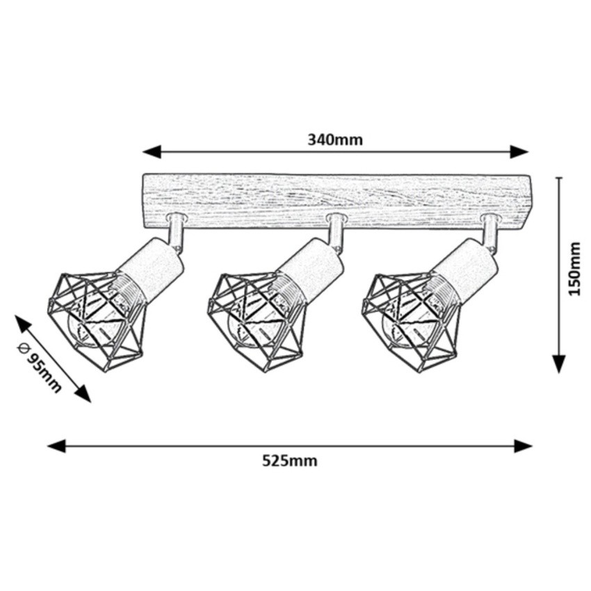 Bodové svítidlo Zeus s 3 žárovkami v industriálním stylu se doporučuje do různých místností vašeho bytu: můžete jej namontovat do obývacího pokoje, jídelny, kuchyně nebo i do ložnice. Svítidlo vyrobené z kovu a dřeva lze připevnit na stěnu pomocí podlouhlého čtvercového dekorativního podstavce z dubu. Mřížkové stínidla s charakteristickým tvarem jsou vyrobené z kovu v matné černé barvě. Svítidlo Zeus lze použít s třemi žárovkami o výkonu každé až 40W. Typ patice je E14. V závislosti na vašem vkusu a místnosti, kde budete svítidlo instalovat, si můžete zvolit zdroj světla v teplé nebo přirozené bílé barvě. Díky flexibilním hlavám svítidla je tento model schopen efektivně osvětlit celou místnost. Rozměry bodového svítidla Zeus s 3 žárovkami jsou následující: šířka 525mm, výška 150mm, vzdálenost od stěny 150mm. Tento model je dodáván bez světelného zdroje.
