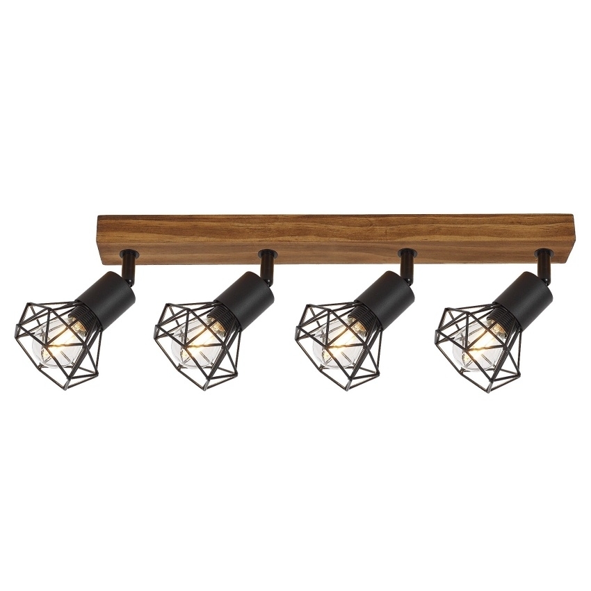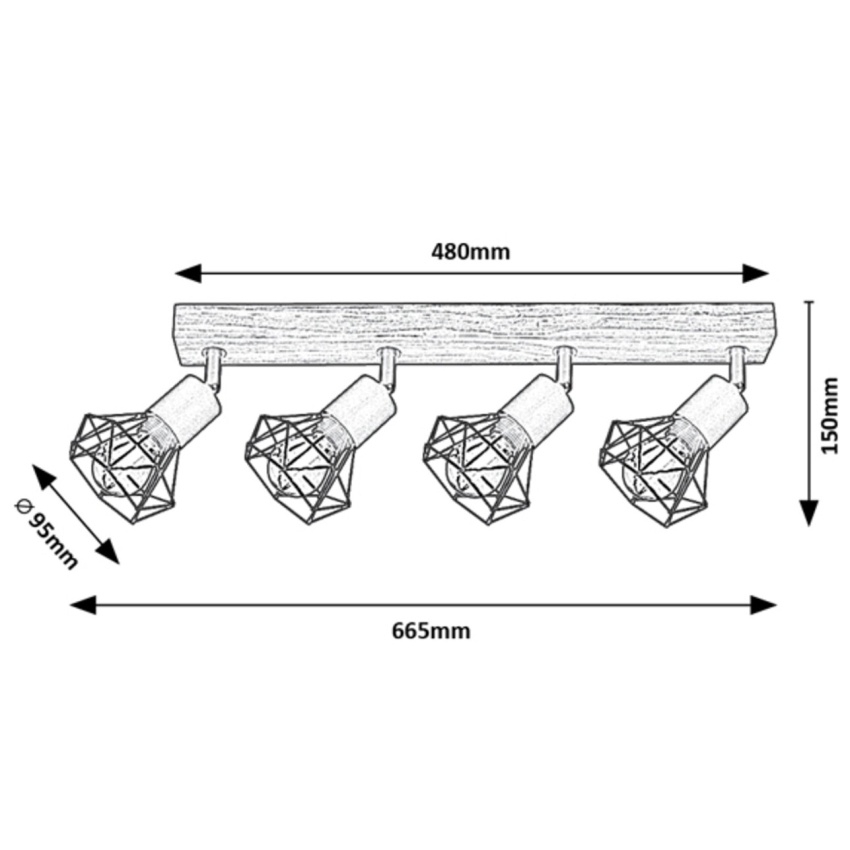 Bodové svítidlo Zeus s 4 žárovkami v industriálním stylu se doporučuje do různých místností vašeho bytu: můžete jej namontovat do obývacího pokoje, jídelny, kuchyně nebo i do ložnice. Svítidlo vyrobené z kovu a dřeva lze připevnit na stěnu pomocí podlouhlého čtvercového dekorativního podstavce z dubu. Mřížkové stínidla s charakteristickým tvarem jsou vyrobené z kovu v matné černé barvě. Svítidlo Zeus lze použít s čtyřmi žárovkami o výkonu každé až 40W. Typ patice je E14. V závislosti na vašem vkusu a místnosti, kde budete svítidlo instalovat, si můžete zvolit zdroj světla v teplé nebo přirozené bílé barvě. Díky flexibilním hlavám svítidla je tento model schopen efektivně osvětlit celou místnost. Rozměry bodového svítidla Zeus s 4 žárovkami jsou následující: šířka 665mm, výška 150mm, vzdálenost od stěny 150mm. Tento model je dodáván bez světelného zdroje.