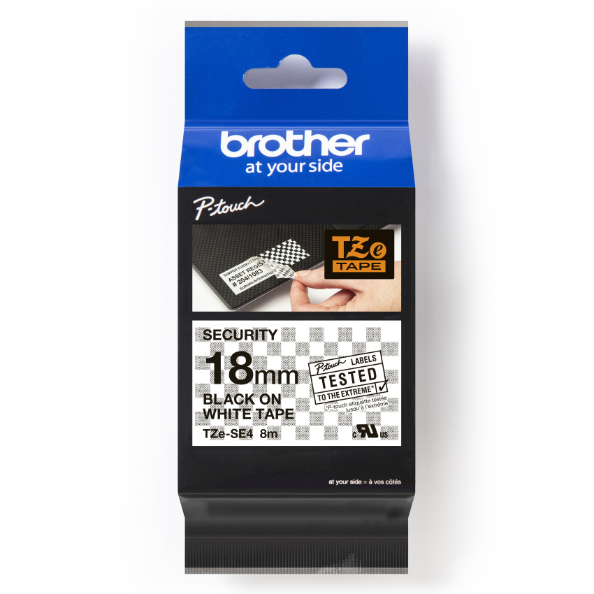 Originální bezpečnostní (plombovací) laminovaná páska Brother TZe-SE4, bílá/ černý tisk, šířka 18 mm, délka 8 m z řady PRO Tape