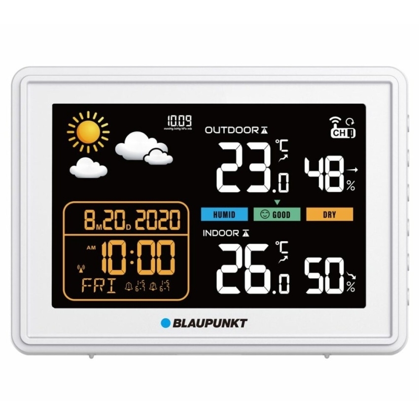 Meteorologická stanice Blaupunkt WS30WH měří vnitřní a venkovní teplotu a vlhkost, zobrazuje absolutní barometrický tlak, trendy těchto hodnot a má hodiny s kalendářem a funkcí budíku. Podporuje až tři bezdrátové senzory.