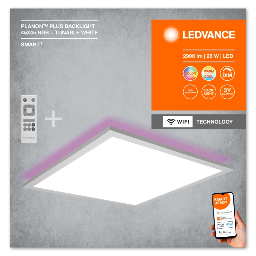 SMART+ Wifi Planon Plus podsvícení 450x450 mm RGB + TW + RC