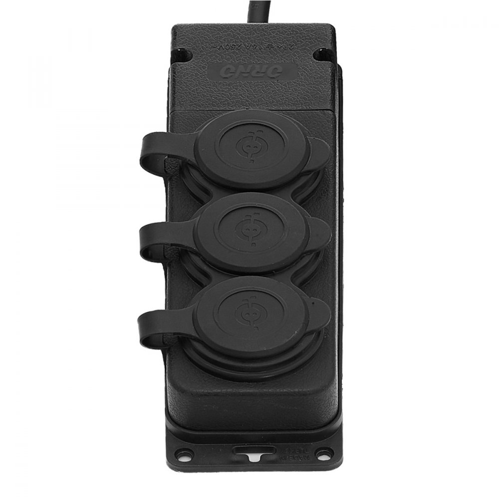 Odolná prodlužovací zásuvka s ochranou proti vniknutí ( IP44 ). Má tři zásuvky 2P + Z s gumou, uzavřený kryt chránící před stříkající vodou, prachem a nečistotami.