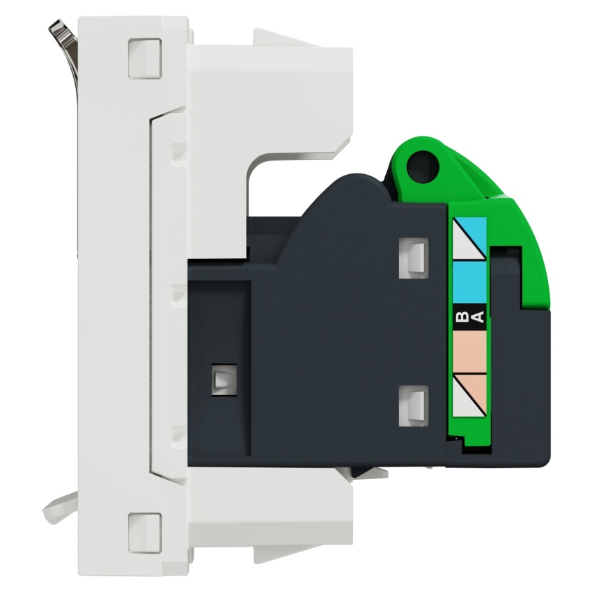 Datová zásuvka RJ45 Kat.6 UTP NU341418, v bílé barvě.