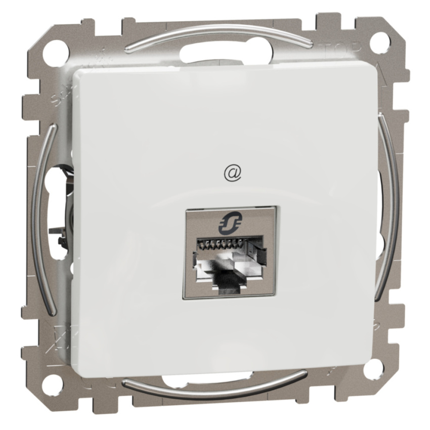 Jednoduchá datová zásuvka RJ45 Kat.6 STP, v bílé barvě.