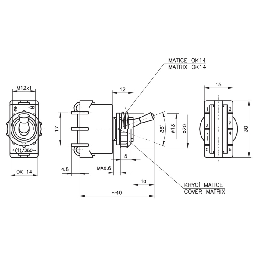 Vypínač Desko 3336-62890 páčkový vestavný 4A 250V černá matice