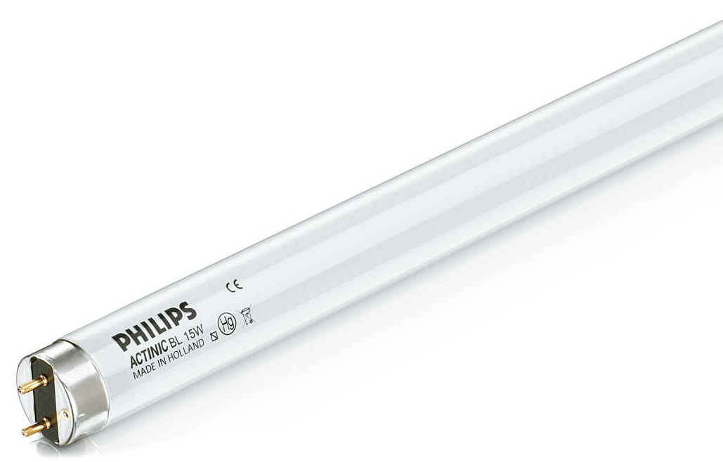 Speciální aktinická zářivková trubice TL-D o příkonu 18W, celková délka včetně kolíků 604mm.