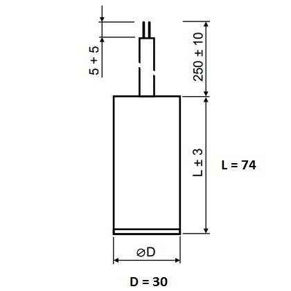 Kondenzátor 12uF/400V motorový běhový a rozběhový, kabel 250mm, bez uchycení