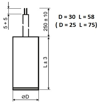 Kondenzátor 5uF/400V motorový běhový a rozběhový, faston, šroub M8