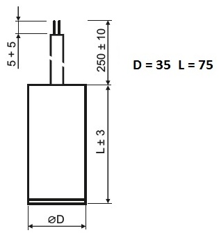Kondenzátor 18uF/400V motorový běhový a rozběhový, kabel 250mm, bez uchycení