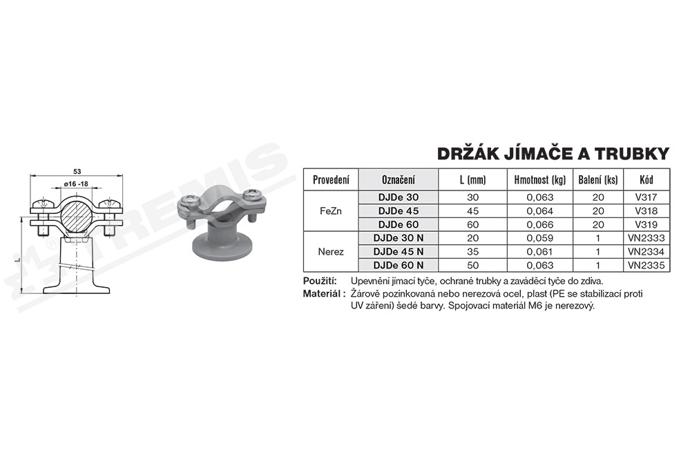 Držák jímače a trubky DJDe 45, FeZn