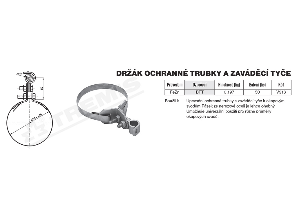 Držák trubky a zaváděcí tyče k okapu TREMIS DTT V316