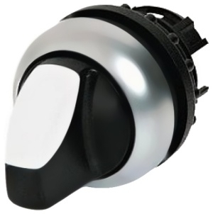 Ovládací hlavice přepínače, prosvětlená, 2 polohové, s aretací, kroužek titan, 60st, bílá