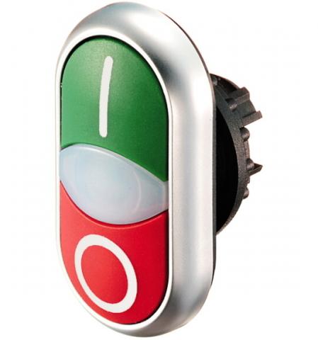 Hlavice dvojitá stiskací M22-DDL-GR-X1/X0 zelená "I" rudá "O"
