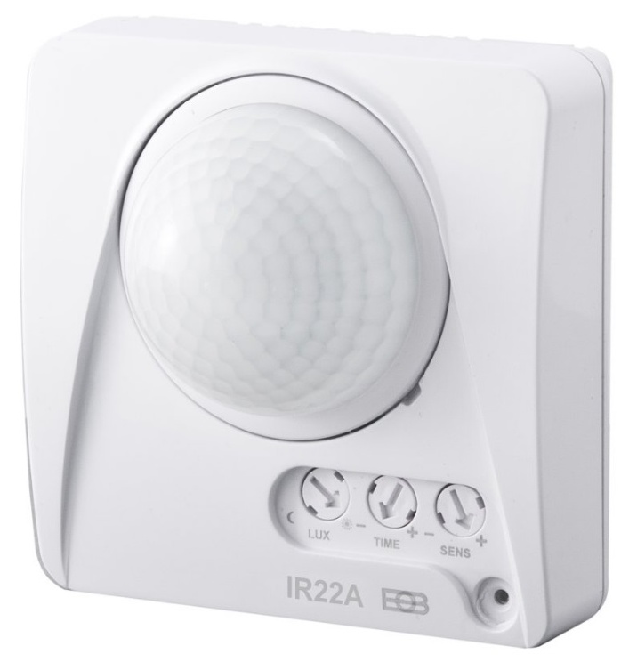 Stropní, nástěnné pohybové čidlo pro spínání většiny elektrických spotřebičů.