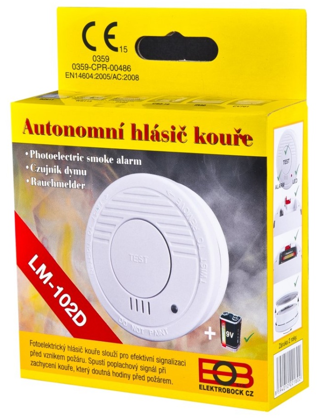 Detektor kouře / Požární hlásič ELEKTROBOCK LM102-D 85dB baterie 9V