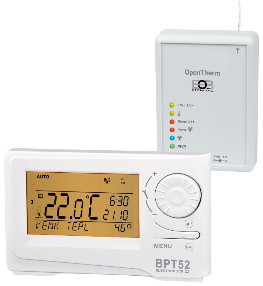 BT52 je inteligentní bezdrátový termostat s komunikací OpenTherm (OT +), novým designem vysílače a indikačními LED!