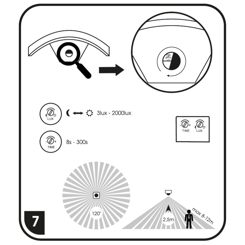 Rozměry [cm] - 27,2(š) x 11,6(v) x 11(h)# Vstupní napětí [V] - ~230# Max. výkon [W] - 8W# Barva světla - bílá# Teplota chromatičnosti [K] - 4000# Pohybový senzor - ano (PIR)# Dosah / úhel pokrytí - 12m / 120°# Doba sepnutí - 8-300s# Citlivost - 3-2000 lux# Materiál - hliník, plast# Barva produktu - antracitová# Stupeň krytí IP - 44# Index podání barev [Ra] - 80# Třída ochrany - I# Světelný tok [lm] - 500# Typ zdroje - LED SMD#