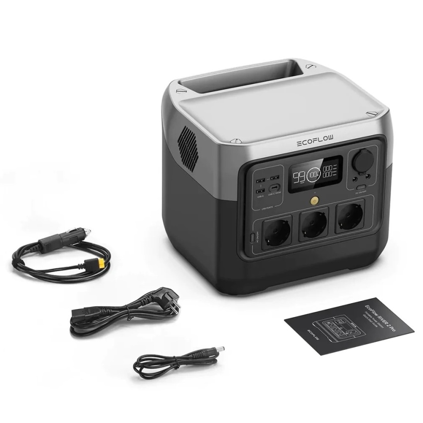 Nabíjecí stanice - baterie LiFePo4, kapacita 768 Wh, nabíjecí výkon ze sítě 940 W, doba nabíjení ze sítě 1,17 h, nabíjecí výkon ze solárního panelu 220 W, vstup AC, výstup 230 V zásuvka, USB-A, USB-C a USB-C (PD), 3X zásuvka 230 V, 4 USB porty, maximální výkon 1600W, nabíjení solárním panelem a LCD displej, nabíjecí kabel AC, nabíjecí kabel DC, uživatelská příručka součástí balení,