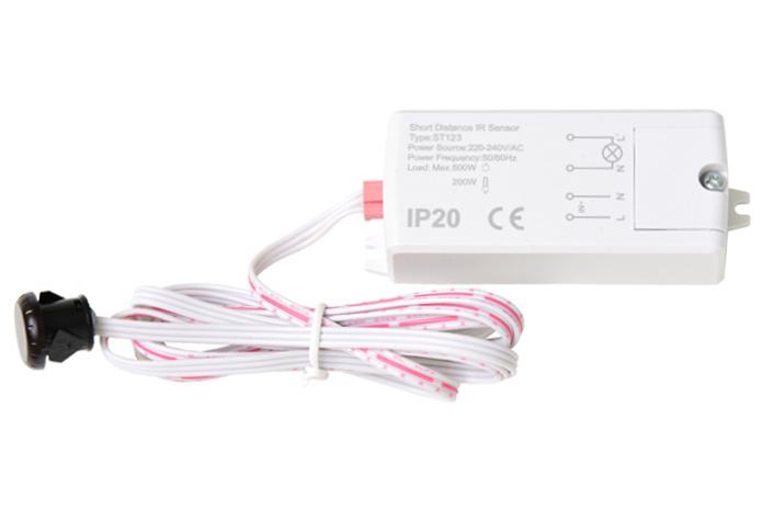 Rozměry (ovladač) - 7,8 x 3,6 x 2,6cm# Napájení [V] - ~230# Max. zátěž [W] - 500# Materiál - plast# Barva produktu - bílá# Pohybový senzor - ano (PIR)# Dosah - max. 5-6cm# Stupeň krytí IP - 20# Třída ochrany - II#