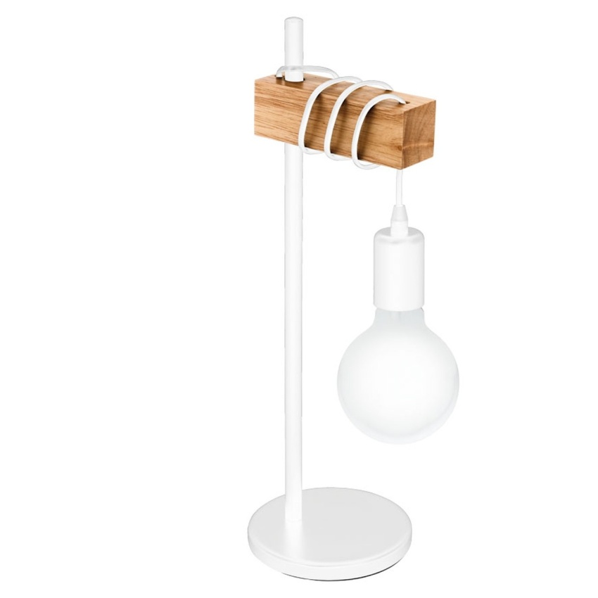 Stolní lampa TOWNSHEND je vyrobena z bílého kovu a má dřevěné rameno a bílý držák lampy. Díky poutavé směsi borového dřeva a kovu doplňuje stolní lampa moderní trendy interiérového designu, jako je Scandi a vintage. Výrobek se zapíná a vypíná pomocí in-line spínače. Ať už na nočním stolku, v obývacím pokoji, jídelně nebo předsíni, poskytne moderní osvětlení každému interiéru. Vyobrazená mléčně bílá žárovka není součástí balení. Výrobek má objímku žárovky E27 a vyžaduje žárovku E27.