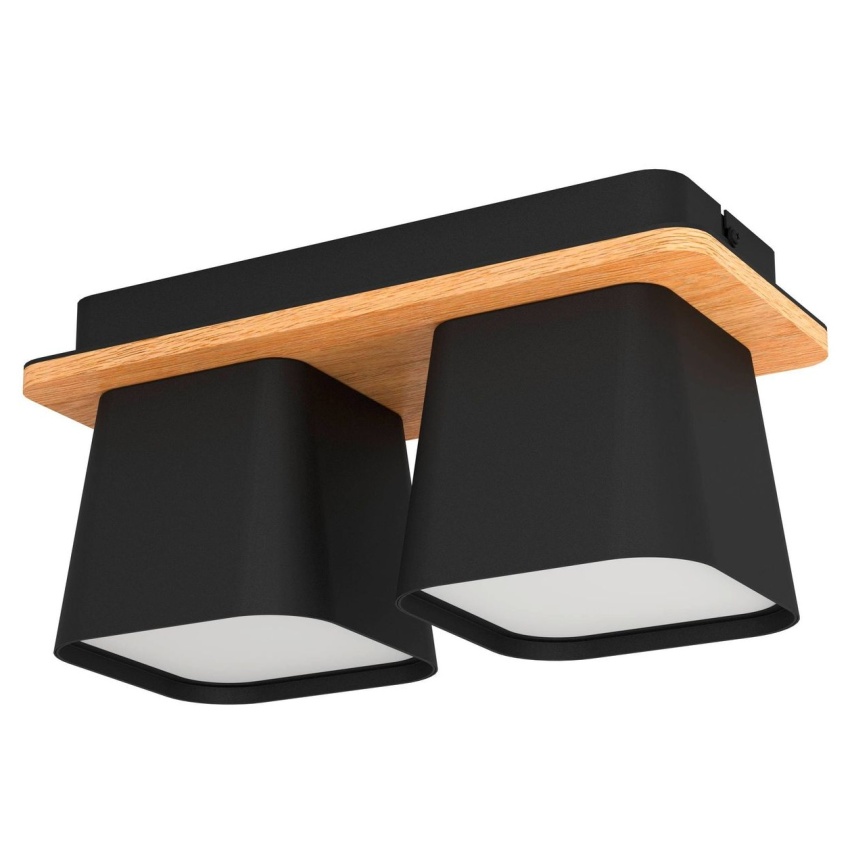 Stropní svítidlo RUSCIO má obdélníkovou základnu z černého kovu s panelem z kaučukovníku. Obdélníková základna má dvě zkosená kovová stínidla v černé barvě. Stínidla mají bílé difuzory pro vytvoření neoslňujícího osvětlení. Výrobek má lineární vzhled, který se prolíná s různými styly interiérového designu a poskytuje moderní osvětlení jakéhokoli prostoru, ať už v ložnici, obývacím pokoji nebo chodbě. Žárovky nejsou součástí dodávky. Výrobek má objímky žárovek E27 a vyžaduje žárovky E27.