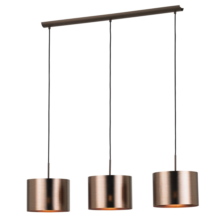 Závěsné svítidlo SAGANTO 1 má tři lesklé hnědé odstíny s vnitřními plochami v barvě mědi. Design má hnědou kovovou stříšku s černými textilními kabely. Závěsné svítidlo se svým elegantním designem doplňuje moderní interiéry a poskytuje stylové řešení osvětlení, ať už v obývacím pokoji nebo nad dlouhým stolem v jídelně. Žárovky nejsou součástí dodávky. Výrobek má objímky žárovek E27 a vyžaduje žárovky E27.