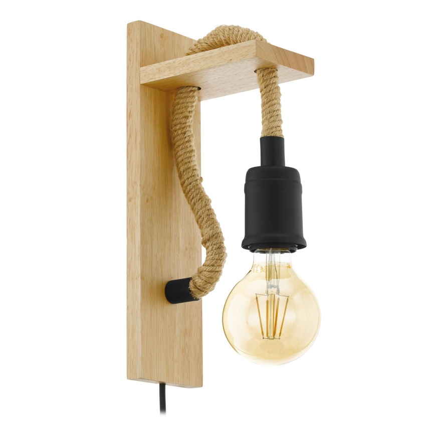 Nástěnné svítidlo RAMPSIDE má povrch z přírodního kaučukovníku s konopným provazem a zavěšeným černým kovovým držákem lampy. Lampa se snadno zapíná a vypíná pomocí in-line spínače. Nástěnné svítidlo má přesvědčivý mix přírodních materiálů a kovu, který doplňuje trendy interiérového designu ve vintage stylu. Poskytuje výrazné osvětlení jakéhokoli prostoru, ať už v obývacím pokoji, ložnici, chodbě nebo jídelně. Vyobrazená žárovka s vláknem není součástí balení. Výrobek má objímku žárovky E27 a vyžaduje žárovku E27.