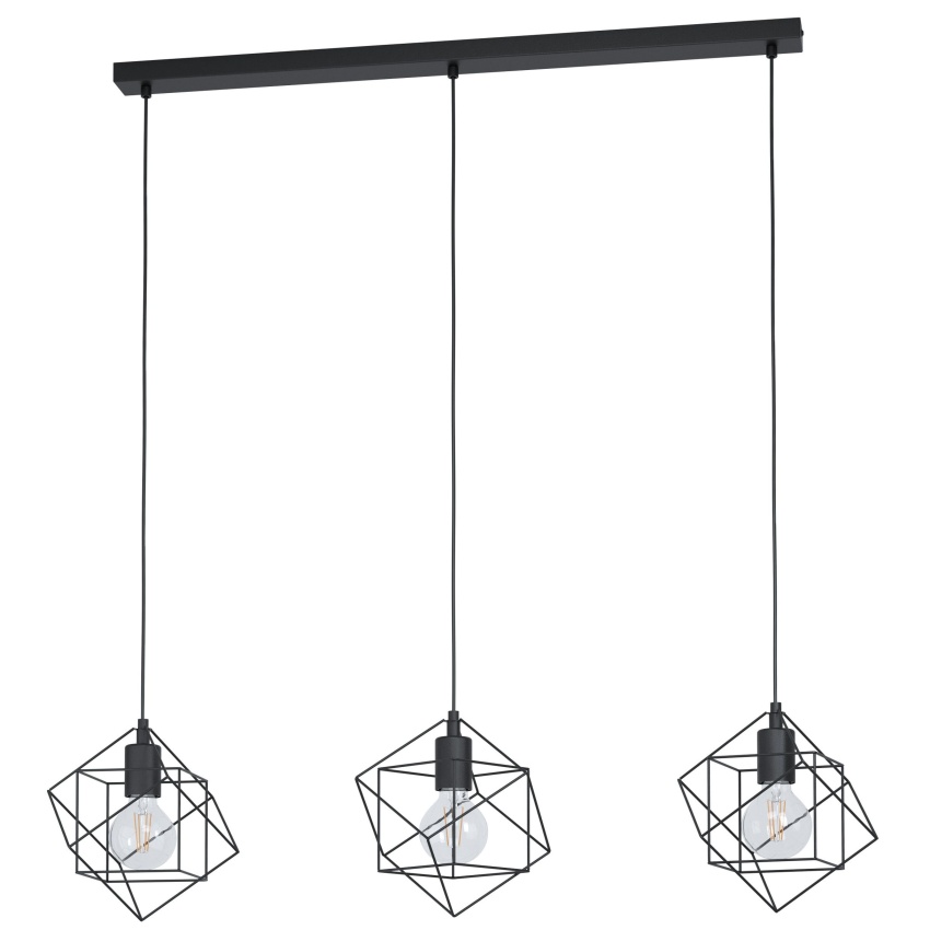 Závěsné svítidlo STRAITON má tři stínidla, každé se dvěma černými čtvercovými drátěnými rámy. Do sebe zapadající drátěné kostky vytvářejí fascinující hru světla a stínu, jakmile se rozsvítí světlo. Závěsné svítidlo hladce splyne s vintage trendem a moderními interiéry. Výrobek nabízí stylové osvětlení, ať už v kuchyni, v obývacím pokoji nebo nad dlouhým stolem v jídelně. Vyobrazené žárovky nejsou součástí dodávky. Výrobek má objímky žárovek E27 a vyžaduje žárovky E27.