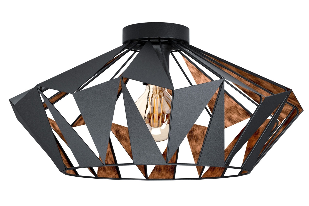 Stropní svítidlo CARLTON 6 se vyznačuje černým kovovým tělem ve tvaru diamantu s vnitřní měděnou výstelkou. Když je stropní světlo zapnuté, vytváří tento produkt fascinující hru světla a stínu skrz geometrické otvory. Stropní svítidlo doplňuje retro-chic interiéry a dobře se hodí v každém prostoru, ať už v kuchyni, obývacím pokoji, ložnici, chodbě nebo jídelně. Výrobek vyžaduje 1 žárovku E27, která není součástí balení.