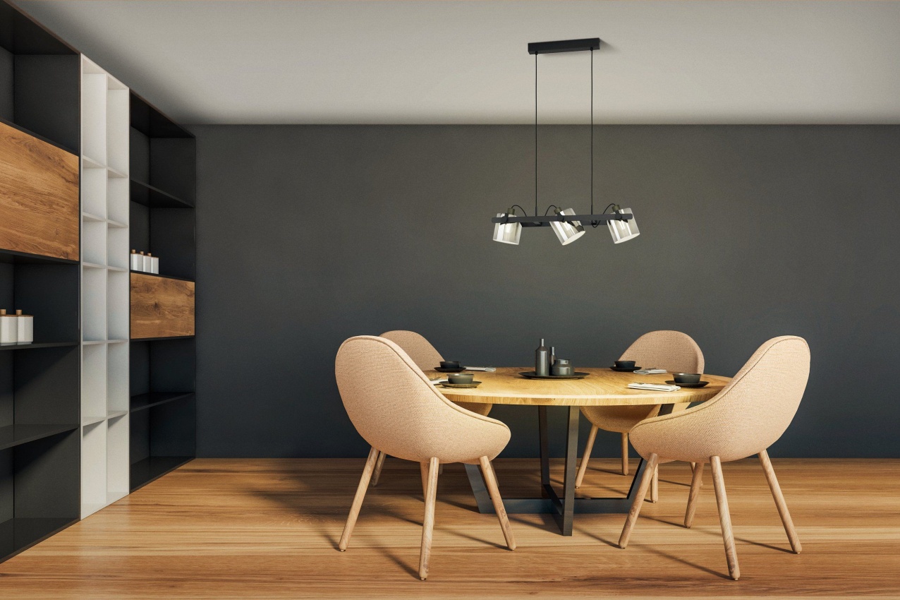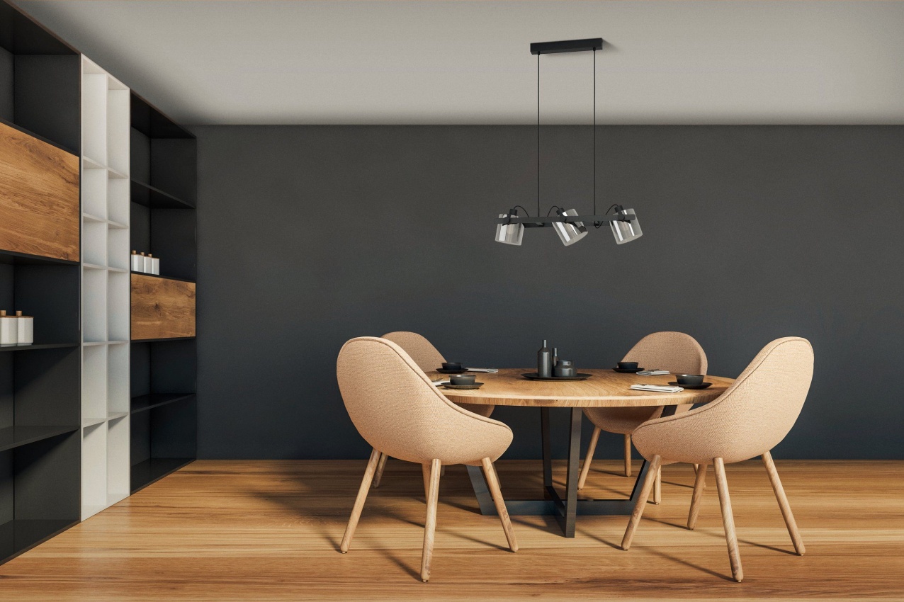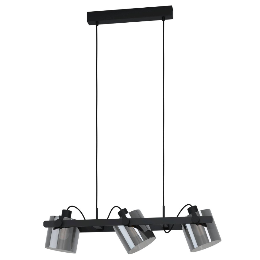 Závěsné svítidlo HORNWOOD 2 se vyznačuje černým dřevěným a kovovým rámem, třemi otočnými stínidly vyrobenými z kouřového černého skla a černým kovovým stropním držákem. Závěsné svítidlo hladce zapadne do moderních interiérů a poskytne útulné osvětlení v obývacím pokoji nebo nad jídelním stolem. Žárovky nejsou součástí dodávky. Výrobek má objímky žárovek E27 a vyžaduje žárovky E27.