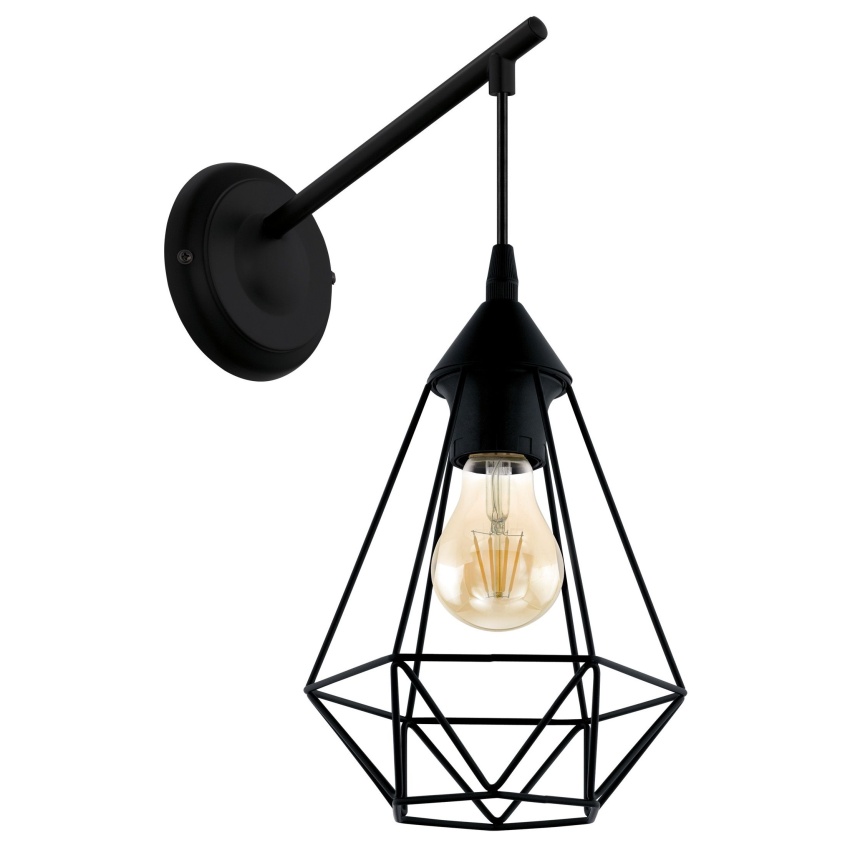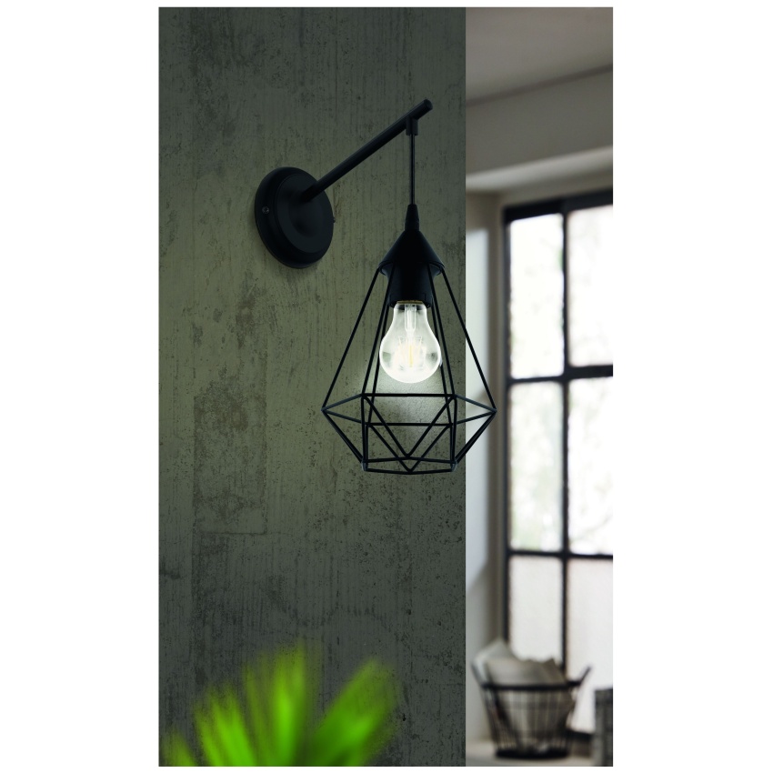 Nástěnné svítidlo TARBES má kulatý černý kovový nástěnný držák a dlouhé černé rameno. Výrobek má drátěné stínidlo v jemném diamantovém tvaru. Když je světlo zapnuté, vytváří fascinující hru světla a stínu prostřednictvím geometrického designu. Moderní nástěnné svítidlo poskytuje stylové řešení osvětlení jakéhokoli prostoru, ať už v kuchyni, obývacím pokoji, ložnici, chodbě nebo jídelně. Vyobrazená žárovka s vláknem není součástí balení. Výrobek má objímku žárovky E27 a vyžaduje žárovku E27.