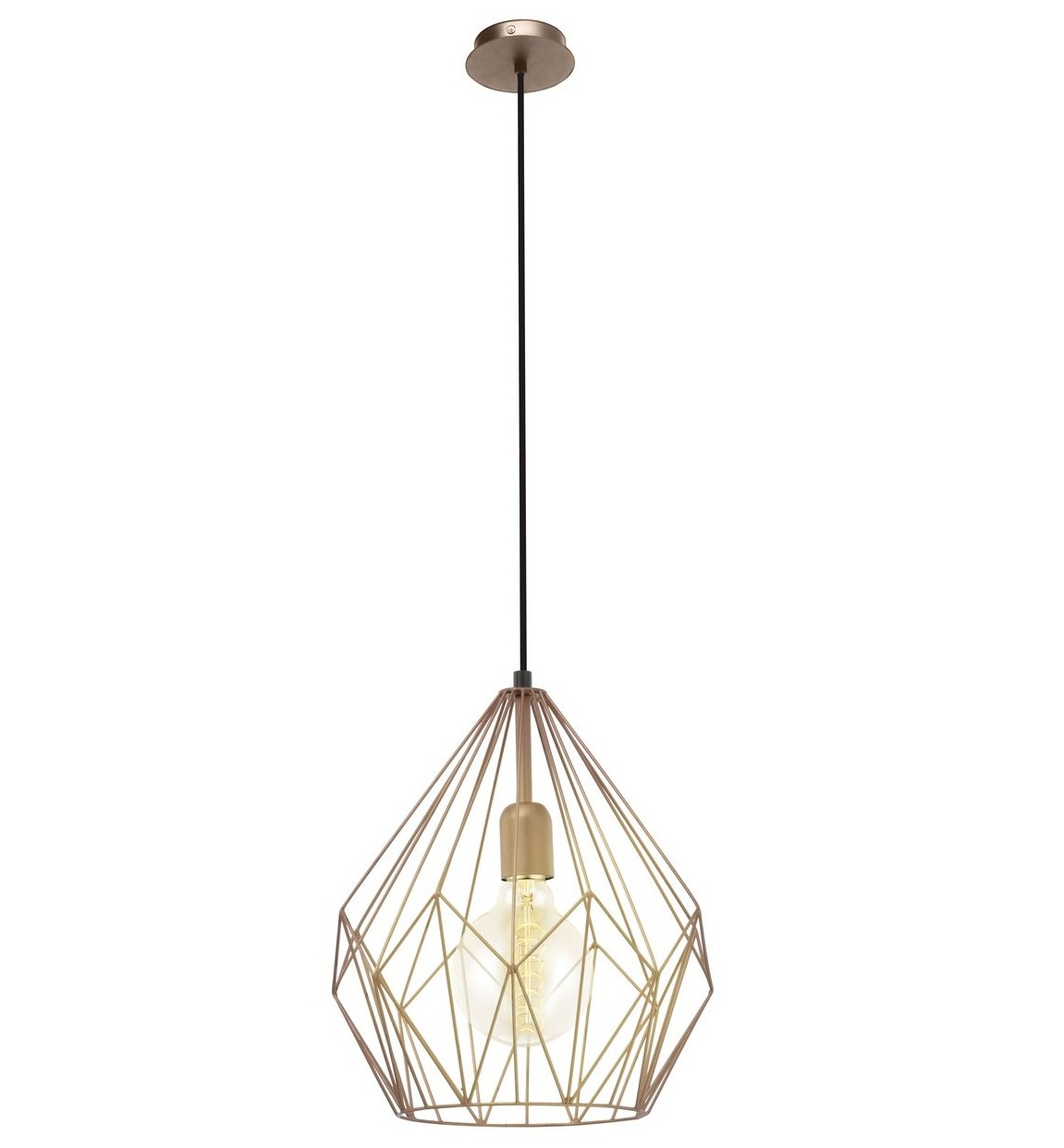 Závěsné svítidlo CARLTON má měděné klecové tělo ve tvaru diamantu. Stínidlo v kleci vytváří fascinující hru světla a stínu, jakmile se rozsvítí světlo. Závěsné svítidlo doplní moderní interiéry ve vintage stylu a dobře se hodí do každého prostoru, ať už v kuchyni, obývacím pokoji nebo nad stolem v jídelně. Výrobek vyžaduje 1 žárovku E27, která není součástí balení.