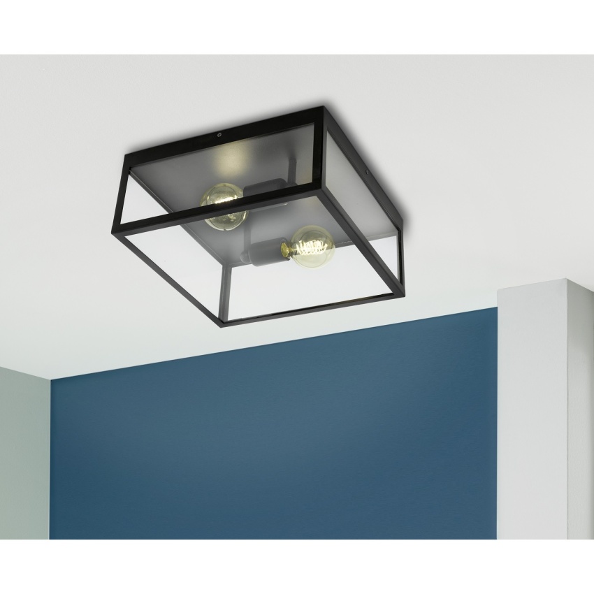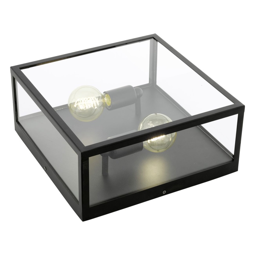 Stropní svítidlo CHARTERHOUSE má černý kovový rám s čirými skleněnými panely, které poskytují styl viditelné žárovky. Stropní svítidlo doplňuje moderní interiéry a nabízí výrazné řešení osvětlení v kuchyni, obývacím pokoji, ložnici nebo předsíni. Výrobek vyžaduje 2 x E27 žárovky, které nejsou součástí balení.