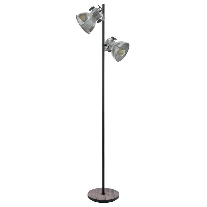 Stojací lampa BARNSTAPLE má černou kovovou základnu s kulatým hnědým dřevěným povrchem obklopeným černým kovovým pásem. Ponurý ocelový vzhled dvou nastavitelných hlav a černých upevňovacích šroubů namontovaných po stranách stínidel završuje rustikální design svítidla. Svítidlo lze snadno zapínat a vypínat pomocí podlahového vypínače v řadě. Podlahové svítidlo hladce zapadá do trendového industriálního stylu a jeho otočné hlavy ho předurčují do jakéhokoli prostoru, ať už je to ložnice, obývací pokoj, jídelna nebo chodba. Výrobek vyžaduje 2 x E27 žárovky, které nejsou součástí balení.