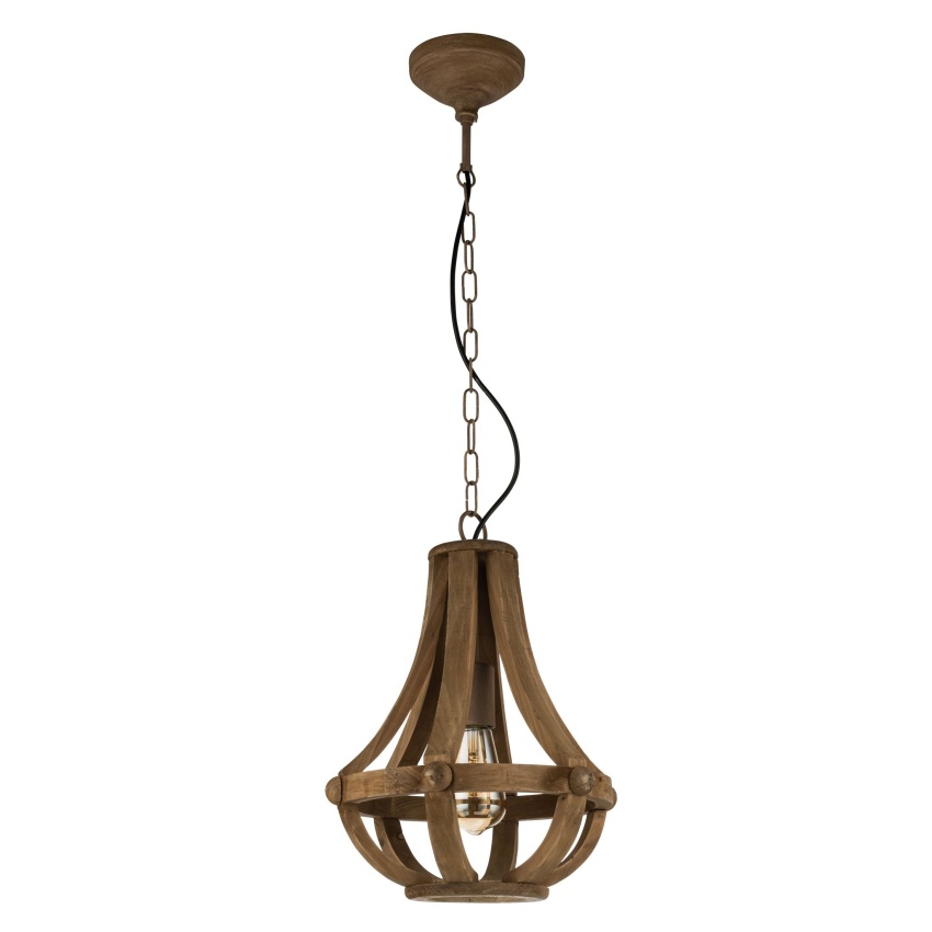 Závěsné svítidlo KINROSS má hnědé dřevěné tělo zavěšené na řetízku na kulatém hnědém kovovém vrchlíku. Dřevěné stínidlo vytváří při rozsvíceném světle fascinující hru světla a stínu. Tento rustikální lustr se mísí s různými styly bydlení a vytváří výrazné osvětlení pro každou místnost, ať už v obývacím pokoji nebo nad stolem v jídelně. Vyobrazená žárovka s vláknem není součástí balení. Výrobek má objímku žárovky E27 a vyžaduje žárovku E27.