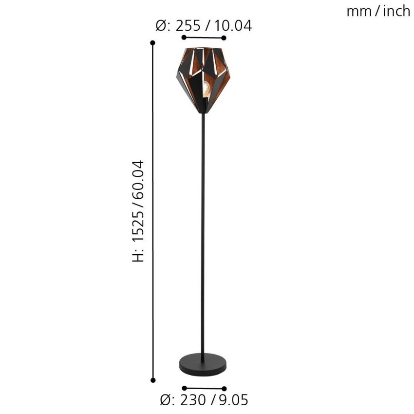 EGLO SVÍTIDLO 49994 CARLTON 1 je elegantní stojací svítidlo s kombinací černé oceli a mědi.