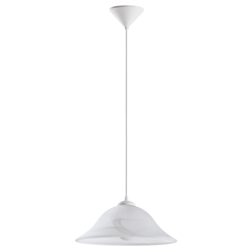 Toto závěsné svítidlo ze série ALBANY je vyrobeno z bílého plastu a bílého alabastrového skla. Má ochrannou izolaci a pro svítivost potřebuje žárovku E27.