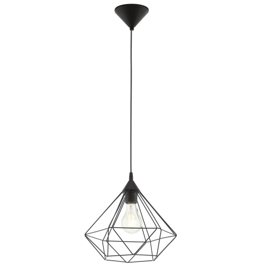 Závěsné svítidlo TARBES má černé drátěné stínidlo v jemném kosočtverečném tvaru zavěšené na kulatém baldachýnu stejné barvy. Když je světlo zapnuté, vytváří fascinující hru světla a stínu prostřednictvím geometrického designu. Ať už v obývacím pokoji, ložnici nebo jídelně, moderní závěsné svítidlo poskytuje stylové osvětlení jakéhokoli prostoru. Vyobrazená žárovka s vláknem není součástí balení. Výrobek má objímku žárovky E27 a vyžaduje žárovku E27.