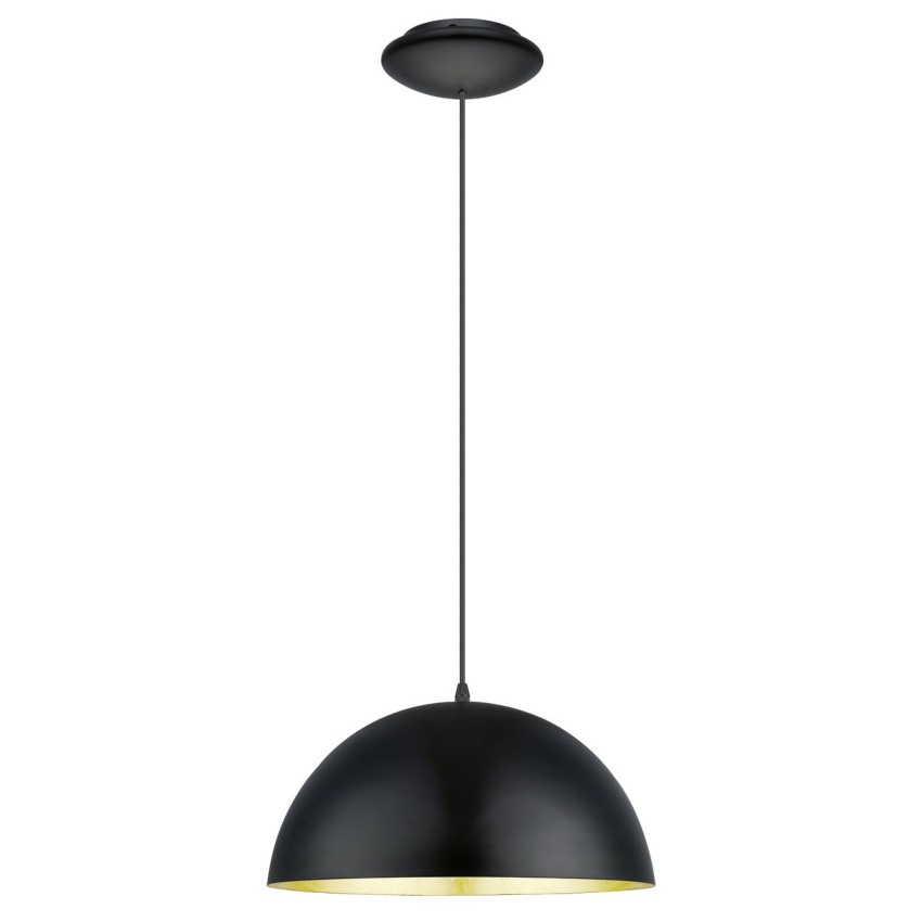 Závěsné svítidlo GAETANO 1 má kulaté stínidlo z černé oceli se zlatým vnitřním povrchem. Závěsné svítidlo s průměrem 38 cm doplní interiéry v industriálním stylu a vytvoří tu správnou náladu v obývacím pokoji nebo jídelně nad jídelním stolem. Žárovka není součástí dodávky. Výrobek má objímku žárovky E27 a vyžaduje 1 žárovku E27.