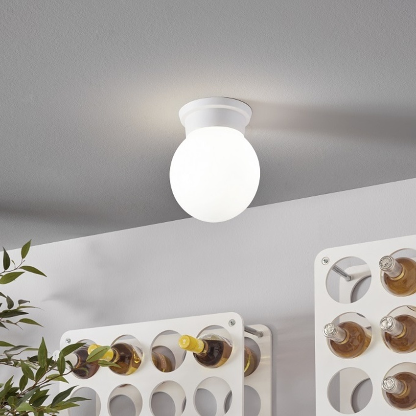 Stropní svítidlo DURELO má kulový skleněný kryt v bílé barvě s kulatou bílou plastovou základnou. Díky svému klasickému designu se stropní svítidlo hodí téměř ke každému stylu interiérového designu a dobře se hodí v jakémkoli prostoru, ať už v kuchyni, obývacím pokoji, ložnici nebo chodbě. Žárovka není součástí dodávky. Výrobek má objímku žárovky E27 a vyžaduje žárovku E27 (max. 28 watt).